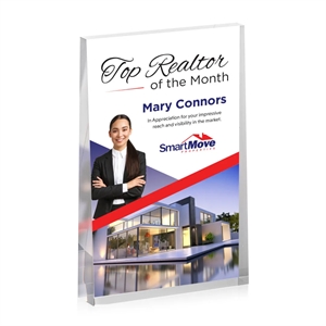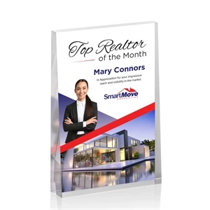 The Lansing VividPrint™ Award is a thick freestanding acrylic award that tapers to the top and provides a large decorating area.
