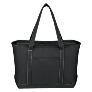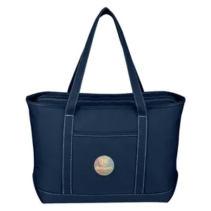 Large Cotton Canvas Yacht Tote. 24 oz. Canvas. Outside Pocket. Zippered Top Closure. 30" Handles. Spot Clean/Air Dry.