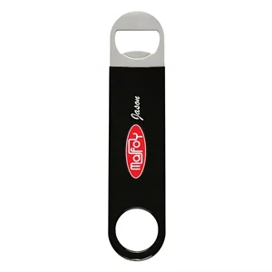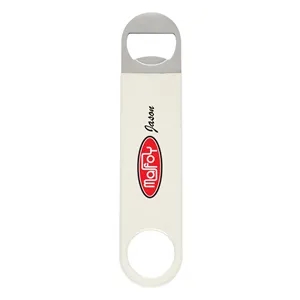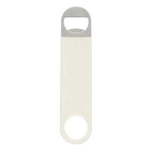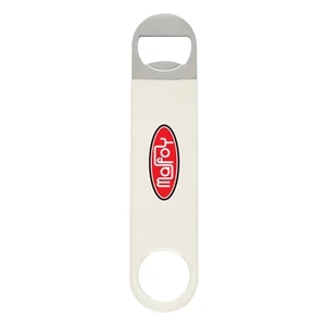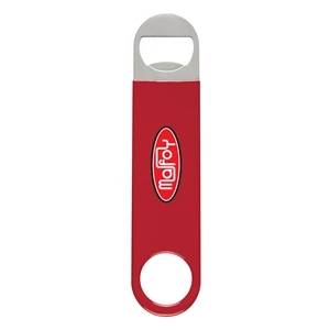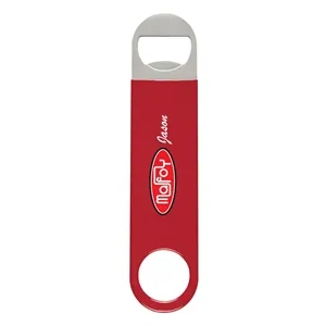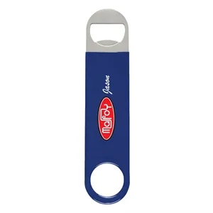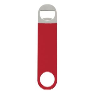 Vinyl coated stainless steel bottle opener in four available colors.