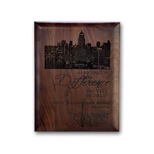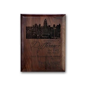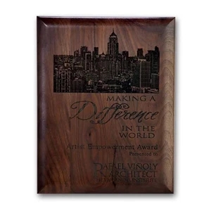 Reproduce intricate detail with our laser engraved process for a natural dimensional look burned directly into our walnut plaque.