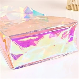 Reusable Iridescent Gift Bag, 14"x4"x12" Clear Bag Large Gift Tote Bags PVC with Handle for Women Party Birthday Travel Shopping