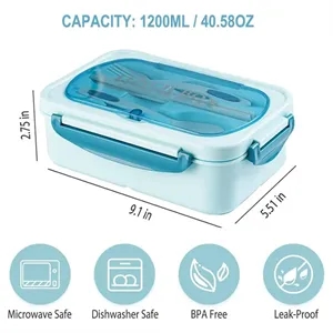 Three Compartments Leak Proof Bento Box with Cutlery. Rush service is available.
