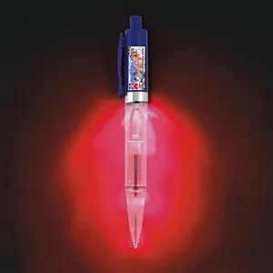 Twist action pen with red LED light.