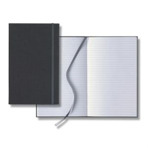 5 1/4" x 8 3/8" journal with an elastic band closure, 192 pages, and ribbon marker.