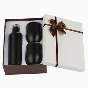 Elegant stainless steel wine gift set featuring a sleek insulated bottle and matching tumblers. Corporate gifts and promotions.