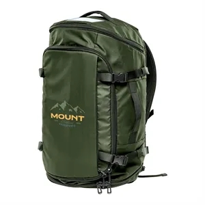 Duffel bag with waterproof fabric, padded back panel, shoulder straps, zippered end pockets, zip mesh pockets and more.