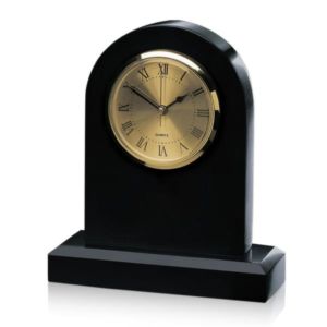 Black marble arch shape clock with base.