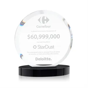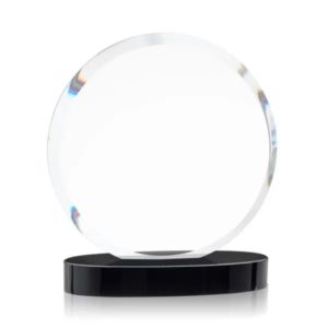 The Starfire Crystal Matlow Circle Award features a circular shape with a beautiful deep framing bevel all-around.