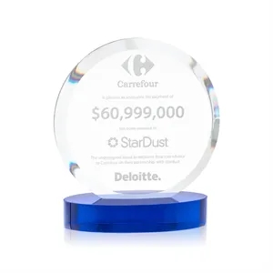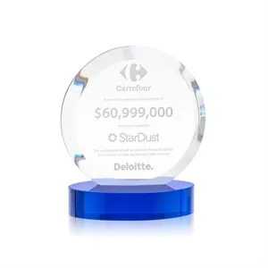 The Starfire Crystal Matlow Circle Award features a circular shape with a beautiful deep framing bevel all-around.