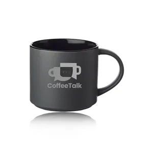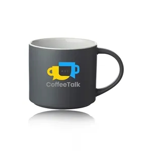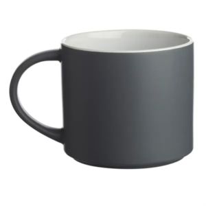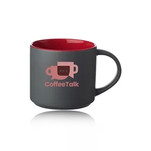 16 oz. stackable ceramic mugs with grey matte exterior and glossy color interior.