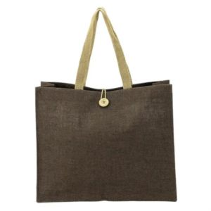 6" x 14" x 16.5" natural jute tote; includes 5" x 5 1/2" interior hanging pocket, 6" gusett, and 21" carrying handles.