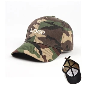 22.8" x 3" x 4.7" polyester six-panel baseball hat in assorted camouflage colors.