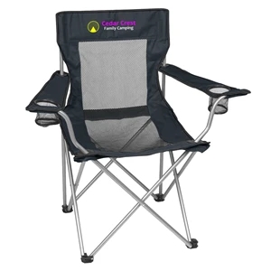 Mesh folding chair with carrying bag and 2 mesh cup holders.