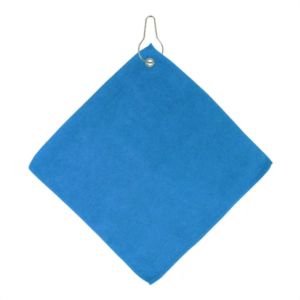 11.5" x 11.5" microfiber golf towel with grommet and hook.