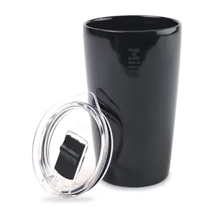 12 oz. stainless steel tumbler with double wall vacuum insulation technology and press-on, sliding closure lid.