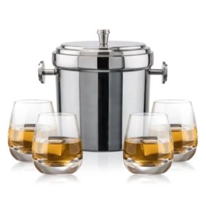 The Milano Ice Bucket & On-the-Rocks Glasses Set delivers a clean, modern look that’s perfect for any occasion.