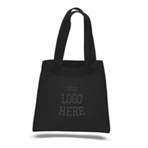 6" x 6" cotton sheeting mini tote bag with handles.