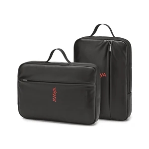 Moleskine classic pro vertical device bag with a sliding handle that runs around the edge.
