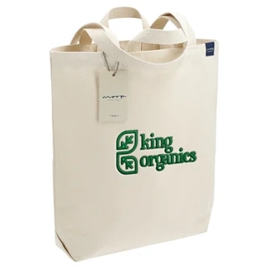 Cotton canvas tote bag with 15" drop handles.