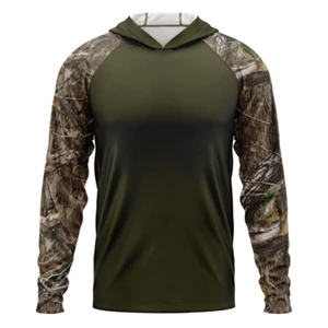 Mossy Oak® 4.4 oz 150 gsm interlock polyester raglan Hooded T-Shirt, 2-way mechanical stretch, Breathable and luxuriously soft!