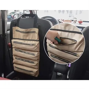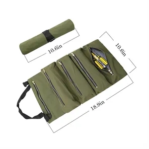 Roll Tool Roll, Canvas Tool Organizer Bucket,Car First Aid Kit Wrap Roll Storage Case,Hanging Tool Carrier Tote, Car Camping Gear