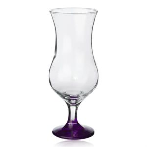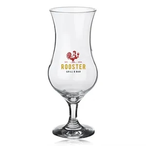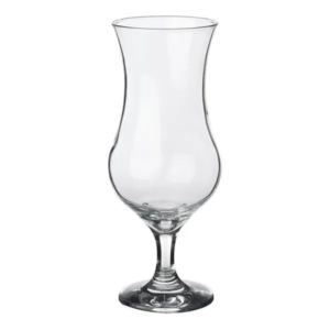 12 oz. hurricane glass with wide rim and sturdy footed base.