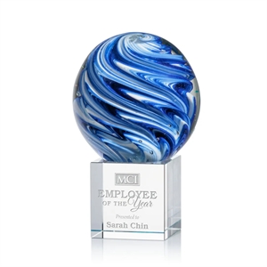 The mesmerizing Naples Art Glass Award features blue and white swirls that make up a beautiful work of art.