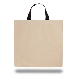 Cotton Canvas Tote Bags, Natural color trade show shopping tote bag w/ 12" reinforced colored handles. Printed in the USA