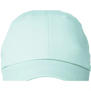 100% washed cotton, 6 panel cap with metal closure on back strap.
