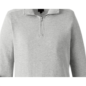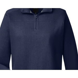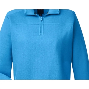 Ladies' pullover with a quarter-zip, collar, neck tape, and ribbed cuffs and hem.