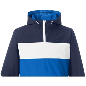 Unisex jacket with water- and wind-resistance, hood liner, half-zip hood, pockets, and locker loop.