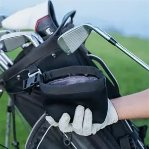 Water-resistant neoprene golf towel pouch with clip. Ideal for cleaning balls and clubs during play.
