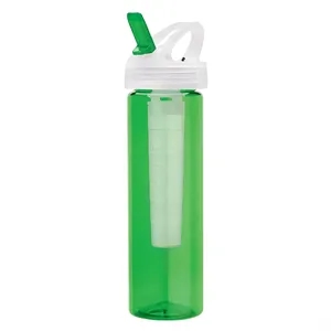 2.75" x 10.38" x 2.75" PET water bottle with 25 oz. capacity; includes freezable ice stick and flip-spout lid.