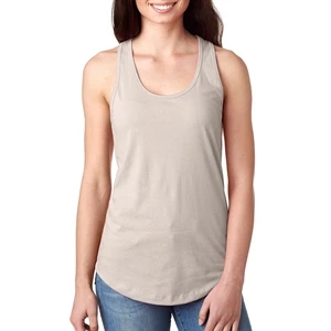 Women's racerback tank top made of cotton and polyester with self-fabric binding.