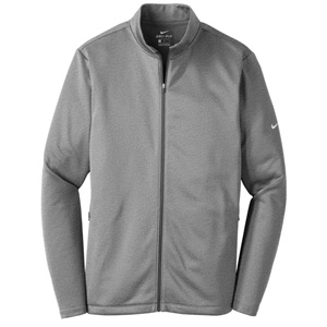 Fleece with a full-zip, collar, front zippered pockets, and open cuffs.