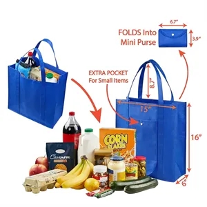 Extra Large Grocery Bags, Foldable into Pouch, Durable Heavy Duty Totes With Long Handles, Washable & Eco Friendly.