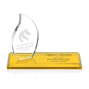 The Northam Flame features a sparkling 4.5" Starfire Crystal Flame mounted on colored crystal base or rosewood Albion base