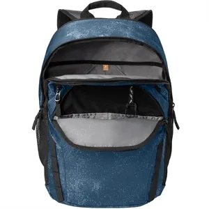 500D poly with PVC, Spacious main compartment, Padded air mesh back panel, Ergonomic padded shoulder straps with tension locks