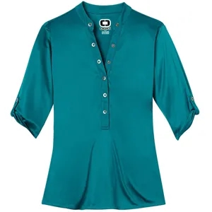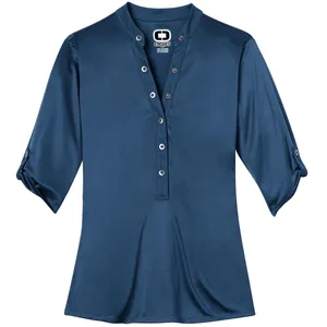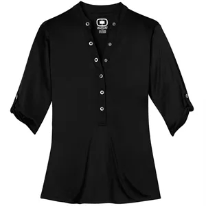 3/4 sleeves with unique sleeve tabs, 6-snap pique placket with OGIO-debossed ring snaps, Set-in, pique sleeve tabs