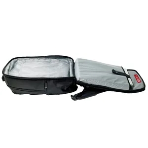 100% poly, Large main compartment with two mesh pockets, Air mesh padded back panel and mesh padded shoulder straps