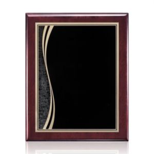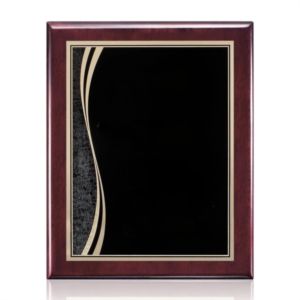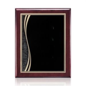 High gloss rosewood piano finished plaque with a black plate.