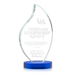 This classic award features a 3/4" thick Starfire Crystal Flame with rounded edges and mounted on an Alberton oval base.