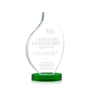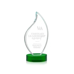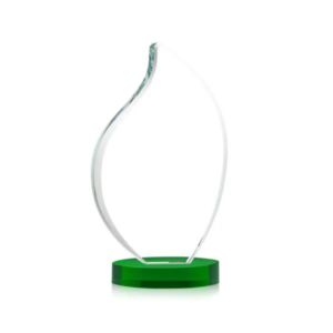This classic award features a 3/4" thick Starfire Crystal Flame with rounded edges and mounted on an Alberton oval base.