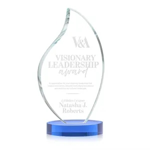 This classic award features a 3/4" thick Starfire Crystal Flame with rounded edges and mounted on an Alberton oval base.
