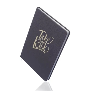 Hardcover notebook with 80 ruled ivory paper pages and matching color ribbon bookmark.