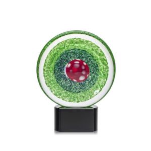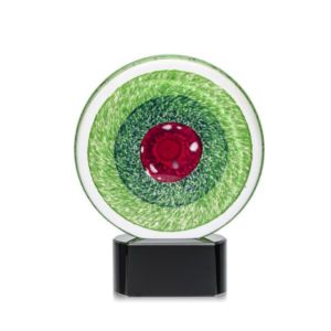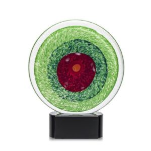 A Stunning Hand Blown work of Art, the On Target Award features brilliant swirls of emerald that encompass a red bullseye