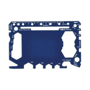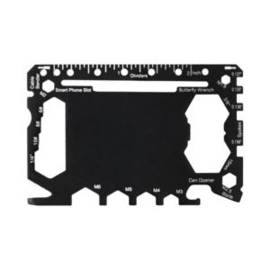 Credit card size multi tool made of stainless steel packed with many different tools.