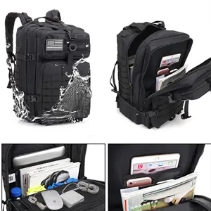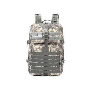 Camo tactical water-repellent hiking backpack: multi-compartments for organization, durable polyester, ergonomic padded straps.