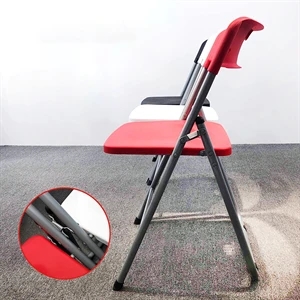 15.7" x 15.7" x 18.5" PP plastic folding chair with tubular steel frame.