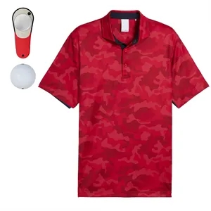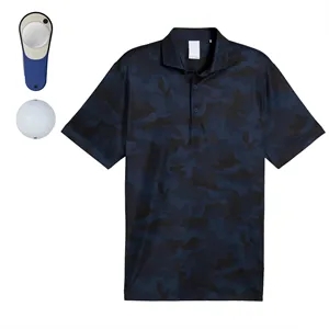 A purpose-driven golf set: a charitable PUMA camo polo, 3 tour-performance Srixon balls, and a Pitchfix tool.